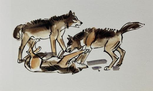 Kresba Ludvíka Kunce (2023) z knihy Návrat vlčího zpěvu J. M. Kvasnici (Élision 2024)